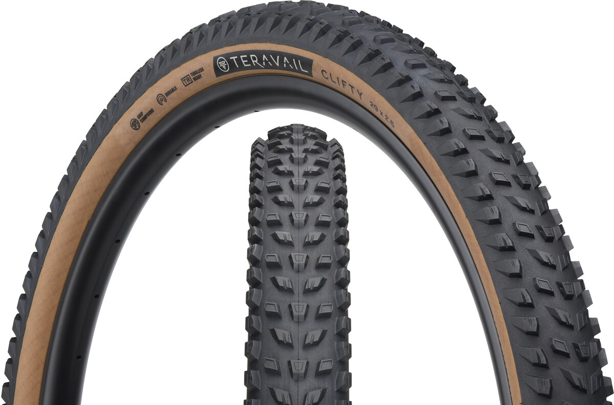 Clifty is our all-mountain tire designed for balanced performance in unpredictable terrain. Uniform lug height and spacing maximize your contact with the trail, while interlocking shoulder and transition lugs deliver dependable traction through every corner. Clifty comes in our Durable or Durable Plus casing and Grip or Grip Plus compound to suit your trail conditions and riding style. It also pairs well with other Teravail tires so you can dial in a ride experience you’ll love.